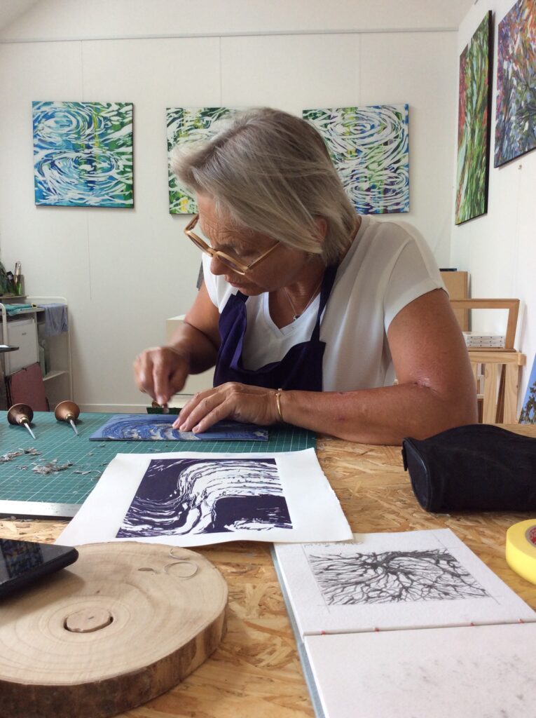En 2016, je me suis installée dans un petit atelier en Bretagne où j’ai rassemblé mes travaux. Je les ai contemplés des journées durant, je les ai classés. De cet ordonnancement est née la question de savoir où j’allais aller, vers quoi me portaient mes envies, vers quel esthétisme j’allais, quelle histoire je souhaitais écrire. Ce fut le point de départ de l’acceptation que mon travail n’était pas qu’une nécessité mais une œuvre à construire. Que derrière les heures de recherche, d’essais, d’abandons, de renoncements et d’enthousiasme, pointait une vraie démarche artistique autour de deux axes de réflexion : les horizons et la nature.